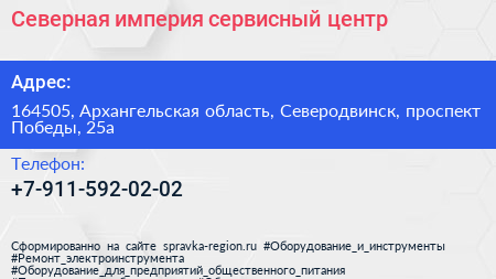 Северная империя, сервисный центр по адресу 164505, Архангельская область, Северодвинск, проспект Победы, 25а в дальнейшем Организация, размещена в следующих категориях: