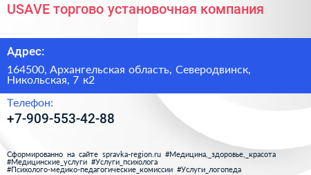 USAVE, торгово-установочная компания по адресу 164500, Архангельская область, Северодвинск, Никольская, 7 к2 в дальнейшем Организация, размещена в следующих категориях: