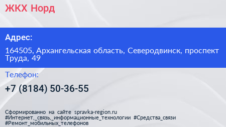 ЖКХ-Норд по адресу 164505, Архангельская область, Северодвинск, проспект Труда, 49 в дальнейшем Организация, размещена в следующих категориях: