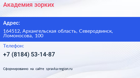 Академия зорких по адресу 164512, Архангельская область, Северодвинск, Ломоносова, 100 в дальнейшем Организация, размещена в следующих категориях:
