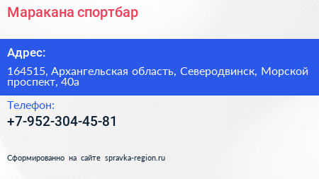 Маракана, спортбар по адресу 164515, Архангельская область, Северодвинск, Морской проспект, 40а в дальнейшем Организация, размещена в следующих категориях: