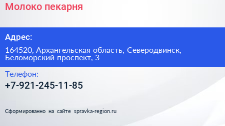 Молоко, пекарня по адресу 164520, Архангельская область, Северодвинск, Беломорский проспект, 3 в дальнейшем Организация, размещена в следующих категориях: