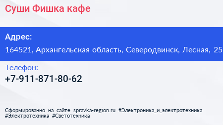 Суши Фишка, кафе по адресу 164521, Архангельская область, Северодвинск, Лесная, 25 в дальнейшем Организация, размещена в следующих категориях: