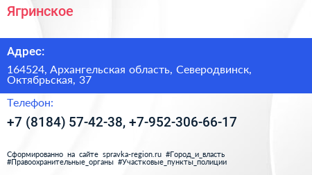 Ягринское по адресу 164524, Архангельская область, Северодвинск, Октябрьская, 37 в дальнейшем Организация, размещена в следующих категориях: