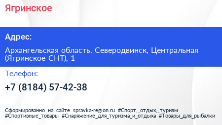 Ягринское по адресу Архангельская область, Северодвинск, Центральная (Ягринское СНТ), 1 в дальнейшем Организация, размещена в следующих категориях: