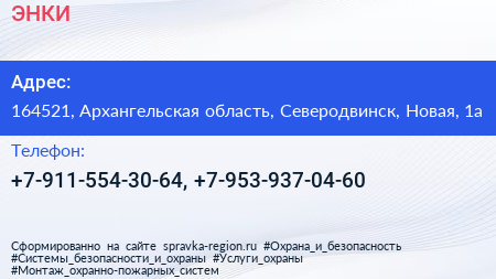 ЭНКИ по адресу 164521, Архангельская область, Северодвинск, Новая, 1а в дальнейшем Организация, размещена в следующих категориях: