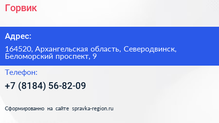 Горвик по адресу 164520, Архангельская область, Северодвинск, Беломорский проспект, 9 в дальнейшем Организация, размещена в следующих категориях: