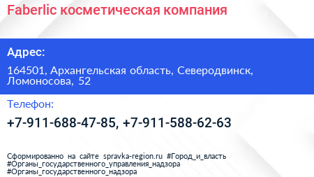 Faberlic, косметическая компания по адресу 164501, Архангельская область, Северодвинск, Ломоносова, 52 в дальнейшем Организация, размещена в следующих категориях: