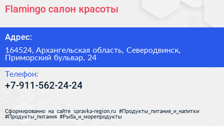Flamingo, салон красоты по адресу 164524, Архангельская область, Северодвинск, Приморский бульвар, 24 в дальнейшем Организация, размещена в следующих категориях: