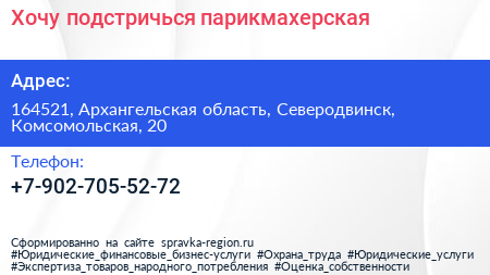 Хочу подстричься, парикмахерская по адресу 164521, Архангельская область, Северодвинск, Комсомольская, 20 в дальнейшем Организация, размещена в следующих категориях: