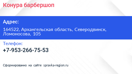 Конура, барбершоп по адресу 164522, Архангельская область, Северодвинск, Ломоносова, 105 в дальнейшем Организация, размещена в следующих категориях: