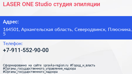 LASER ONE Studio, студия эпиляции по адресу 164501, Архангельская область, Северодвинск, Плюснина, 5 в дальнейшем Организация, размещена в следующих категориях: