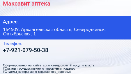 Максавит, аптека по адресу 164509, Архангельская область, Северодвинск, Октябрьская, 1 в дальнейшем Организация, размещена в следующих категориях: