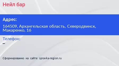 Нейл-бар по адресу 164509, Архангельская область, Северодвинск, Макаренко, 16 в дальнейшем Организация, размещена в следующих категориях: