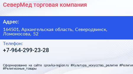 СеверМед, торговая компания по адресу 164501, Архангельская область, Северодвинск, Ломоносова, 52 в дальнейшем Организация, размещена в следующих категориях: