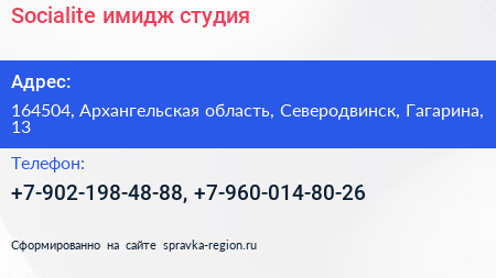 Socialite, имидж-студия по адресу 164504, Архангельская область, Северодвинск, Гагарина, 13 в дальнейшем Организация, размещена в следующих категориях: