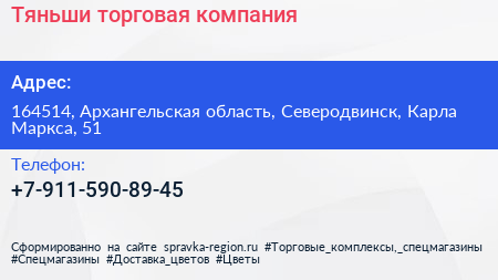Тяньши, торговая компания по адресу 164514, Архангельская область, Северодвинск, Карла Маркса, 51 в дальнейшем Организация, размещена в следующих категориях: