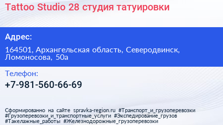 Tattoo Studio 28, студия татуировки по адресу 164501, Архангельская область, Северодвинск, Ломоносова, 50а в дальнейшем Организация, размещена в следующих категориях: