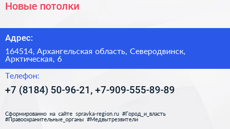 Новые потолки по адресу 164514, Архангельская область, Северодвинск, Арктическая, 6 в дальнейшем Организация, размещена в следующих категориях: