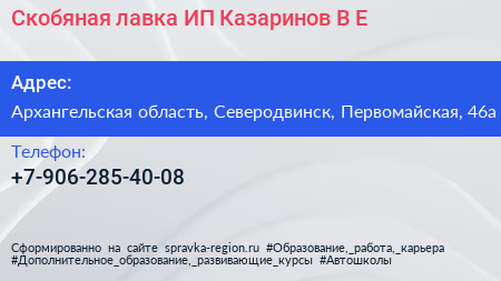 Скобяная лавка, ИП Казаринов В.Е. по адресу Архангельская область, Северодвинск, Первомайская, 46а в дальнейшем Организация, размещена в следующих категориях: