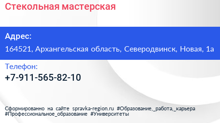 Стекольная мастерская по адресу 164521, Архангельская область, Северодвинск, Новая, 1а в дальнейшем Организация, размещена в следующих категориях: