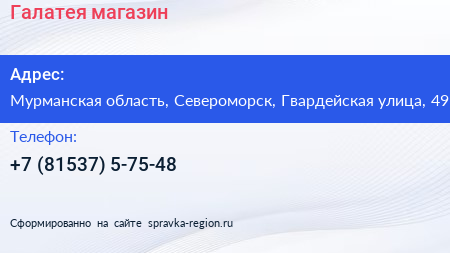 Галатея, магазин по адресу Мурманская область, Североморск, Гвардейская улица, 49 в дальнейшем Организация, размещена в следующих категориях: