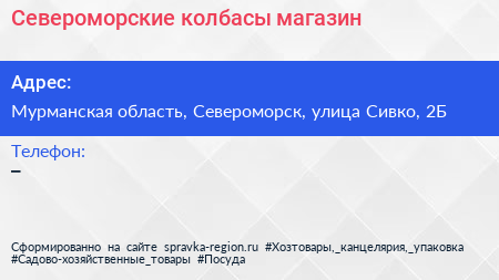 Североморские колбасы, магазин по адресу Мурманская область, Североморск, улица Сивко, 2Б в дальнейшем Организация, размещена в следующих категориях: