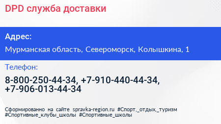 DPD, служба доставки по адресу Мурманская область, Североморск, Колышкина, 1 в дальнейшем Организация, размещена в следующих категориях: