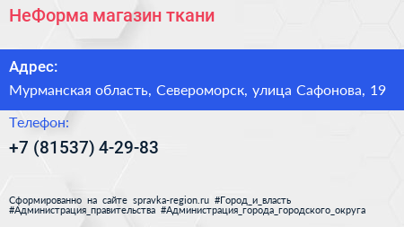 НеФорма, магазин ткани по адресу Мурманская область, Североморск, улица Сафонова, 19 в дальнейшем Организация, размещена в следующих категориях: