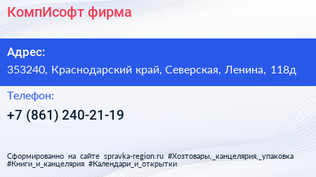 КомпИсофт, фирма по адресу 353240, Краснодарский край, Северская, Ленина, 118д в дальнейшем Организация, размещена в следующих категориях: