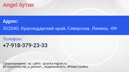 Angel, бутик по адресу 353240, Краснодарский край, Северская, Ленина, 49г в дальнейшем Организация, размещена в следующих категориях: