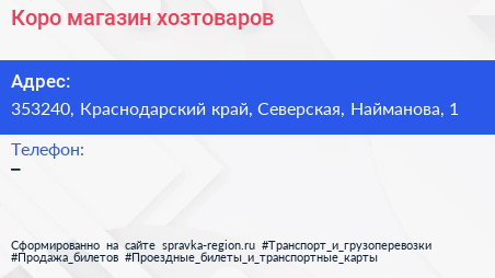 Коро, магазин хозтоваров по адресу 353240, Краснодарский край, Северская, Найманова, 1 в дальнейшем Организация, размещена в следующих категориях: