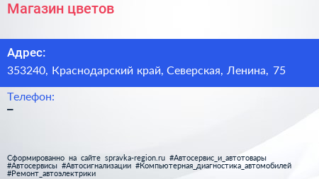 Магазин цветов по адресу 353240, Краснодарский край, Северская, Ленина, 75 в дальнейшем Организация, размещена в следующих категориях:
