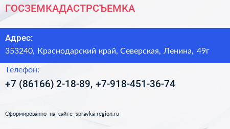 ГОСЗЕМКАДАСТРСЪЕМКА по адресу 353240, Краснодарский край, Северская, Ленина, 49г в дальнейшем Организация, размещена в следующих категориях: