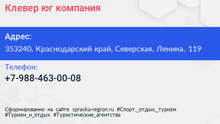 Клевер юг, компания по адресу 353240, Краснодарский край, Северская, Ленина, 119 в дальнейшем Организация, размещена в следующих категориях: