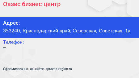 Оазис, бизнес-центр по адресу 353240, Краснодарский край, Северская, Советская, 1а в дальнейшем Организация, размещена в следующих категориях: