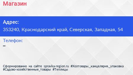 Магазин по адресу 353240, Краснодарский край, Северская, Западная, 54 в дальнейшем Организация, размещена в следующих категориях: