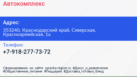 Автокомплекс по адресу 353240, Краснодарский край, Северская, Красноармейская, 1а в дальнейшем Организация, размещена в следующих категориях: