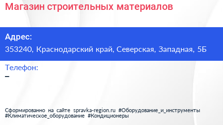 Магазин строительных материалов по адресу 353240, Краснодарский край, Северская, Западная, 5Б в дальнейшем Организация, размещена в следующих категориях: