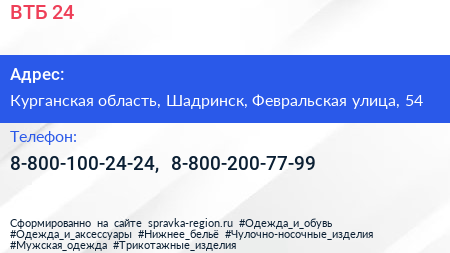ВТБ 24 по адресу Курганская область, Шадринск, Февральская улица, 54 в дальнейшем Организация, размещена в следующих категориях: