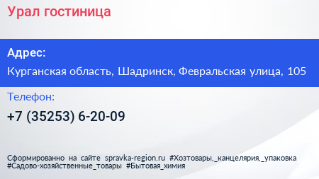 Урал, гостиница по адресу Курганская область, Шадринск, Февральская улица, 105 в дальнейшем Организация, размещена в следующих категориях: