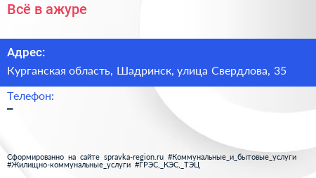 Всё в ажуре по адресу Курганская область, Шадринск, улица Свердлова, 35 в дальнейшем Организация, размещена в следующих категориях: