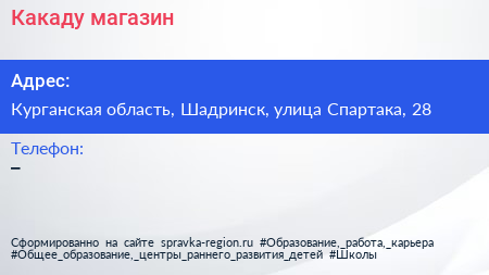 Какаду, магазин по адресу Курганская область, Шадринск, улица Спартака, 28 в дальнейшем Организация, размещена в следующих категориях: