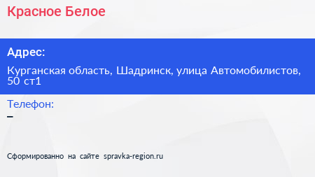 Красное & Белое по адресу Курганская область, Шадринск, улица Автомобилистов, 50 ст1 в дальнейшем Организация, размещена в следующих категориях: