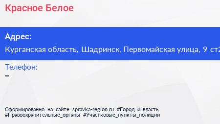 Красное & Белое по адресу Курганская область, Шадринск, Первомайская улица, 9 ст2 в дальнейшем Организация, размещена в следующих категориях: