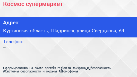 Космос, супермаркет по адресу Курганская область, Шадринск, улица Свердлова, 64 в дальнейшем Организация, размещена в следующих категориях: