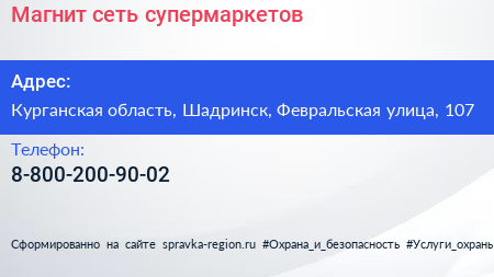 Магнит, сеть супермаркетов по адресу Курганская область, Шадринск, Февральская улица, 107 в дальнейшем Организация, размещена в следующих категориях: