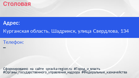 Столовая по адресу Курганская область, Шадринск, улица Свердлова, 134 в дальнейшем Организация, размещена в следующих категориях: