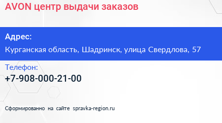 AVON, центр выдачи заказов по адресу Курганская область, Шадринск, улица Свердлова, 57 в дальнейшем Организация, размещена в следующих категориях: