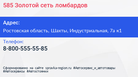 585*Золотой, сеть ломбардов по адресу Ростовская область, Шахты, Индустриальная, 7а к1 в дальнейшем Организация, размещена в следующих категориях: